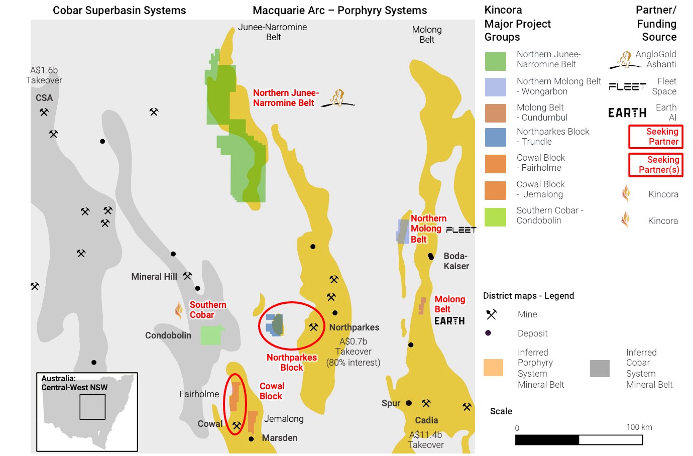 By having a significant portfolio of partner funded large porphyry projects, and a very focused program on a 100% owned Condobolin project, the Company is seeking to position Kincora as a leading institutional grade explorer in the public Australian and Canadian markets, and the leading project generator on the ASX.