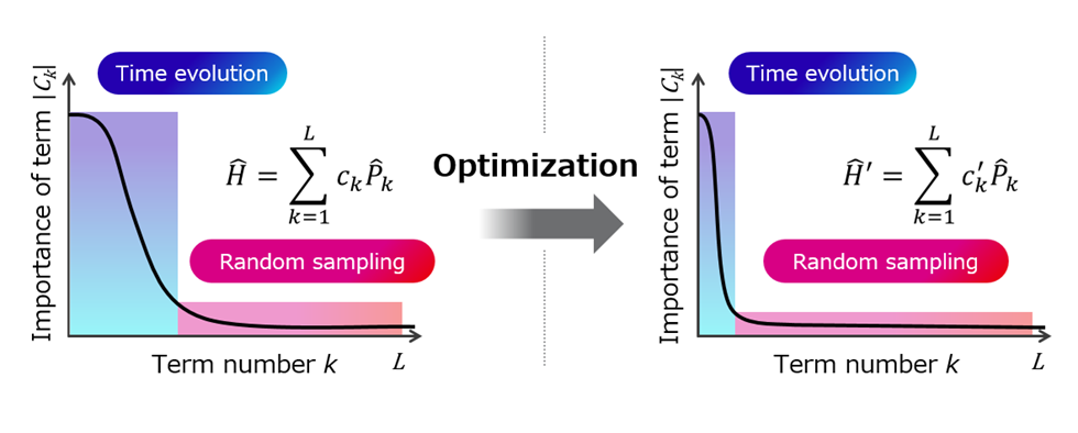 - This technology refines existing methods, which reduce computational resources by decomposing molecular models into many terms and selectively applying two techniques—time evolution and random sampling—with different characteristics based on the importance of each term