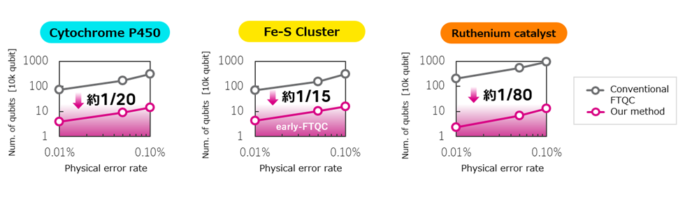 To validate the effectiveness of these technologies, the researchers evaluated the number of qubits and computational time required for industrially applicable energy calculations for three distinct molecules: Cytochrome P450, an important oxidizing enzyme in drug discovery; Iron-sulfur clusters, catalytic proteins involved in ammonia synthesis and energy metabolism; and Ruthenium catalysts, a focus in synthetic chemistry. Accurate energy calculations for these molecules are currently infeasible with classical computers due to memory limitations. Even with the STAR architecture ver. 2, such computations would take several millennia and high precision calculations would be difficult to achieve due to the scale of the calculation. The results of this validation primarily demonstrate that the STAR architecture ver. 3 reduces the number of qubits necessary to perform the calculations to between 1/15 and 1/80 of conventional FTQC architectures. Furthermore, the partners confirmed that calculations are feasible on early-FTQC quantum computers even with a lowered physical error rate requirement for qubits, from the previous 0.01% to 0.10%.