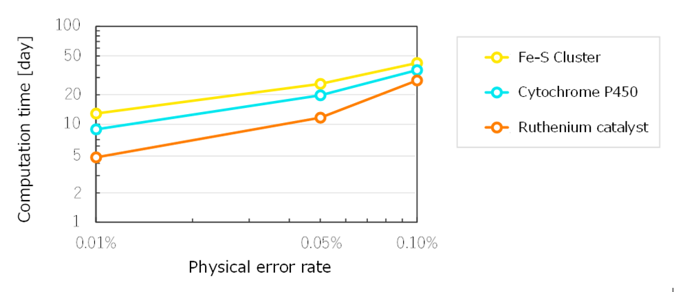 Moreover, the molecular model optimization technology shortened computation time by three orders of magnitude compared to not using the technology. Fujitsu and The University of Osaka confirmed that computation times could be significantly reduced to approximately 35 days with a qubit error rate of 0.10% and approximately 10 days with 0.01%. Further reduction in computation time is possible with future expected reductions in the physical error rates of quantum computers and the use of parallel computing with multiple quantum computers, making the achieved computation times sufficiently practical.
