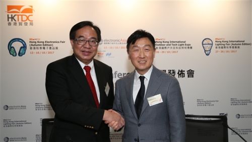 | | HKTDC Acting Executive Director Benjamin Chau (R) and HKTDC Electronics/Electrical Appliances Industries Advisory Committee Chairman Dr Lo Wai-kwok (L) announce details of the HKTDC Hong Kong Electronics Fair (Autumn Edition), electronicAsia, the HKTDC Hong Kong International Lighting Fair (Autumn Edition) and the HKTDC Hong Kong International Outdoor and Tech Light Expo. |