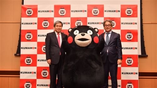 | | (L) Ikuo Kabashima, governor of Kumamon and (R) Noda, ADK content director announces the latest commercial projects of Kumamon with Asatsu-DK at a press conference during the show. |