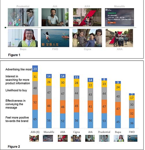 | | Figure 1: CSG Hong Kong tested 8 insurance advertising campaigns as part of the survey; Figure 2: The results from the survey show which advertising campaigns resonate the best with audiences |