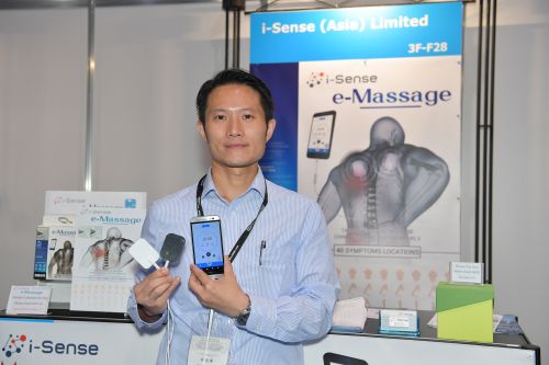 - i-Sense (Asia) Limited's (3F-F28) I-Sense e-Massage is a portable massage device powered by a smart phone or tablet. It can be operated through an app. Featuring six massaging modes, the machine can be used anytime, anywhere.