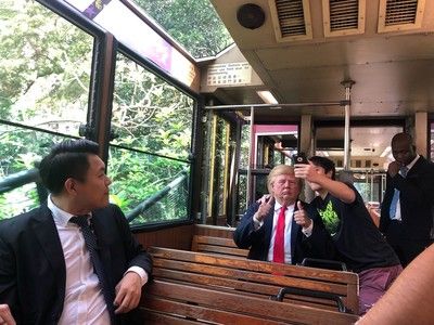 During his surprise visit, President Trump tried his first ride on the Peak Tram. Amazed by the stunning Hong Kong skyline, President Trump also met the incredibly lifelike wax figure of himself at Madame Tussauds Hong Kong. After greeting his friends President Xi of China and Indian Prime Minister Narendra Modi, Trump also jumped at the opportunity to discuss "social media strategy" with American supermodel, Kendall Jenner.