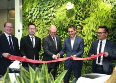 | | Tom Cartledge (Benoy CEO), Qin Pang (Benoy Director, Head of Shanghai Studio), Graham Cartledge (Benoy Chairman), John Edwards (British Consul-General in Shanghai) and Simon Wong (Benoy Director) cut the ribbon to officially open Benoy's expanded Shanghai studio |