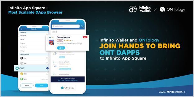 Infinito Wallet and ONTology announced formal partnerships back in August 2018 and since then, and both sides have been working together for technical integration. In November 2018, the Universal Wallet officially enabled support for Mainnet ONT and ONG token. And now, four months after, they have successfully enabled support for ONT DApps on Infinito App Square with support from ONTology core development team.