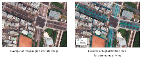 In this proof of concept, the three companies will work together to process satellite imagery into vehicle-friendly HD maps. Leveraging Maxar's cloud-based Geospatial Big Data platform (GBDX), imagery from Maxar's optical satellite imagery library will be fed into NTT DATA's specialized algorithms using Artificial Intelligence to extract information that is necessary to generate the detailed road network. Based on the above information, TRI-AD will make HD maps available for delivery from TRI-AD's cloud into Toyota test vehicles. The group is focusing first on creating an automated HD map for a predefined area of the Tokyo metropolitan region, opening up the future possibility of supporting automated mobility on all roads.