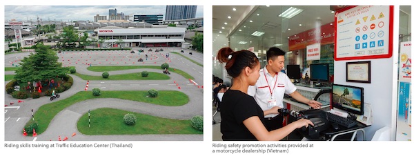 Especially in Asian countries where motorization is progressing rapidly, Honda has been proactive in conducting activities suitable to the actual conditions of respective countries and regions, including promoting safety at dealership locations at the time of product deliveries, offering driver education at Traffic Education Centers, and conducting safety education programs for students and young children.